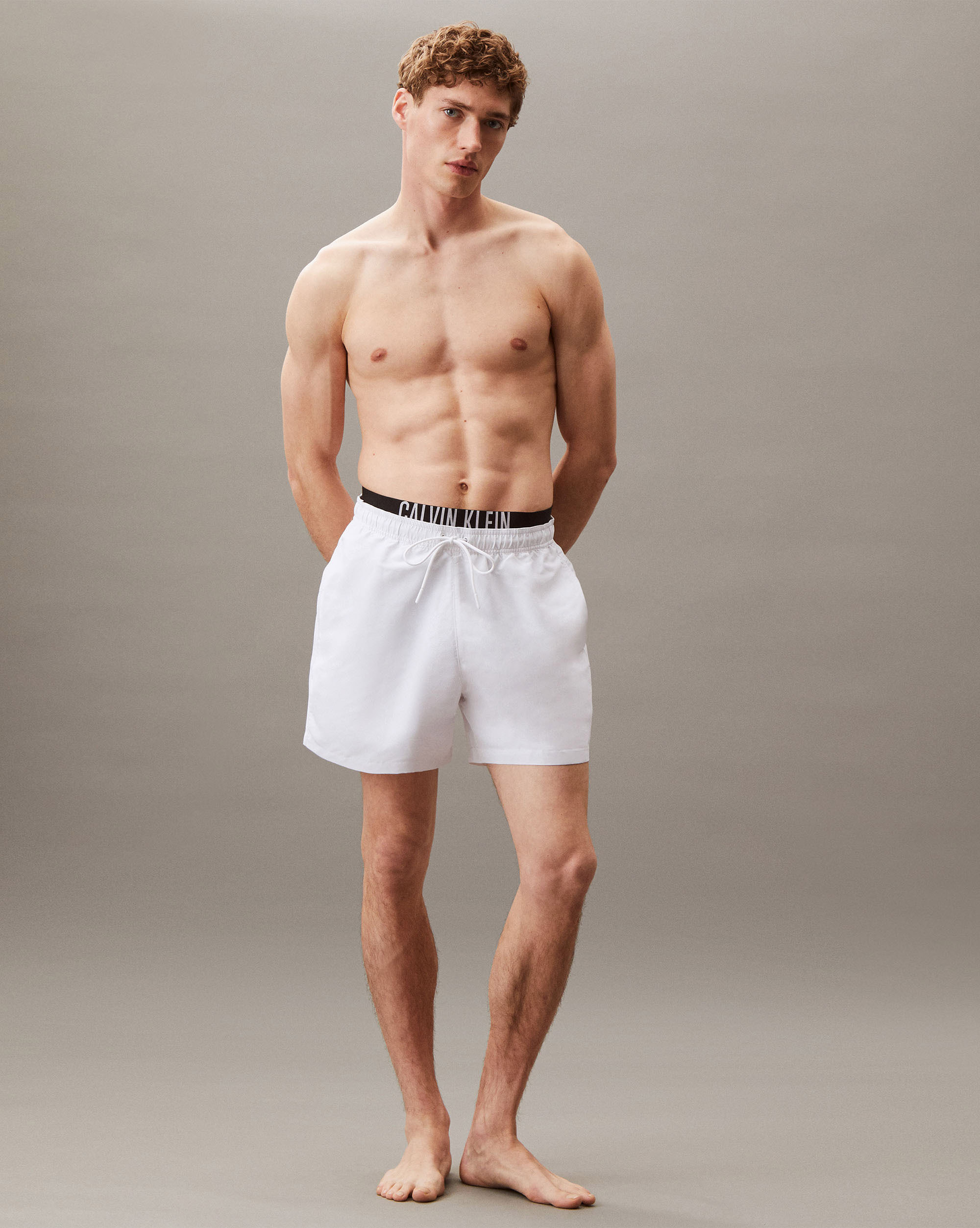 Pantaloncini da bagno corti con fascia in vita doppia Bianco Uomo